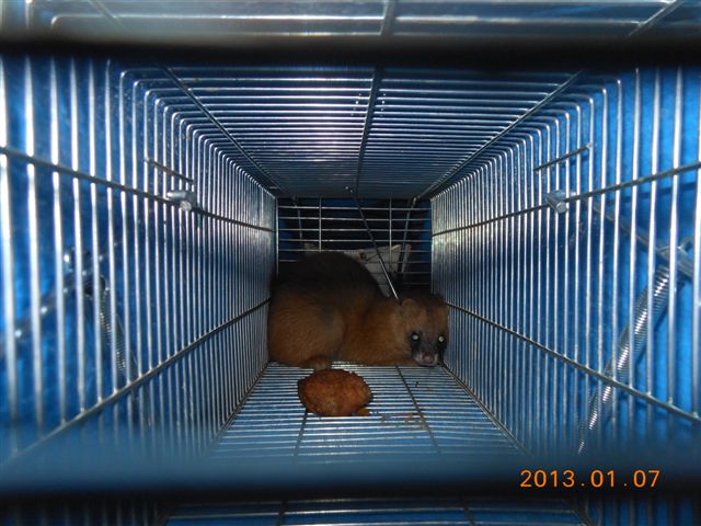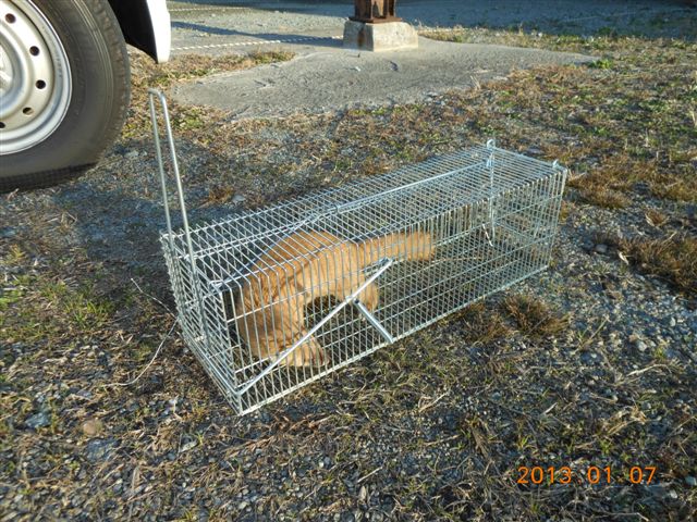 簡易運搬で会社へ到着しました。(イタチは鳥獣保護法で保護されている)