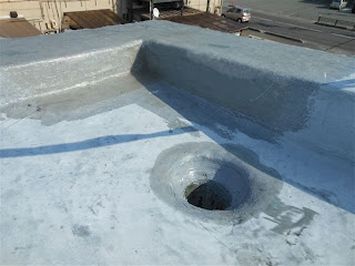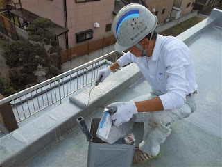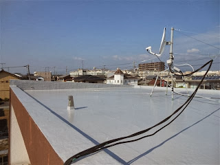 防水工事 本日、工期約2週間のFRP防水工事が完成しました。 陸屋根の一般住宅です。大雨になると2階、1階に雨が漏ります。 こういった物件は、防水処理が瓦の代わりになり、極めて重要です。 排水ドレンや原因になりそうなところを、徹底して下地処理をおこないます。 ガラスマットを樹脂で積層していきます。 排水ドレンは隙間をなくすため積層を巻き込み、一体化します。 2層にするために、さらに上から積層ライニングを施します。 最終は、防水トップコートを施工します。 排水ドレン付近の完成写真です。 屋上屋根の完成です。 2階ベランダの完成です。 降水後の写真です。水をよくはじいています。 これで、万全?と思いたいです。 ただ、雨漏りは大変原因究明が難しいのです。 屋根部分以外に原因がある可能性もあります。 この物件の、暴風雨後の様子を確認するまで安心は出来ません。